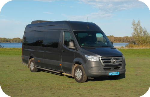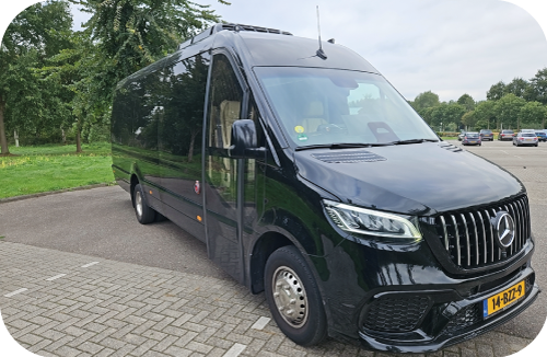 Alle bussen van Minibuscentrale zijn zwarte Mercedes Sprinters.