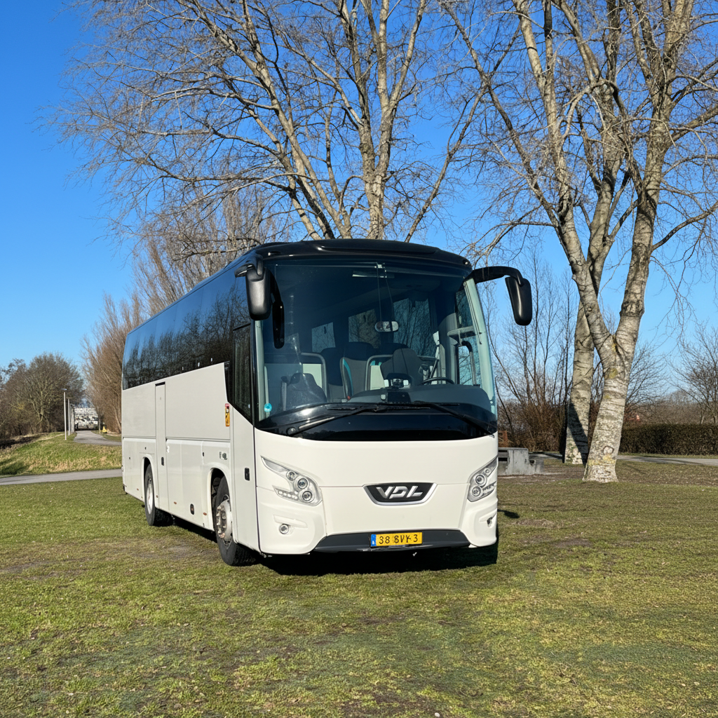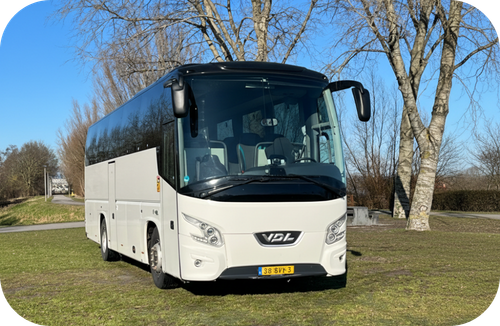 De touringcars zijn van VDL of Mercedes.